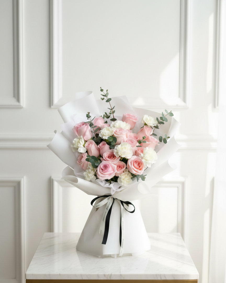 | A fresh and vibrant bouquet of 30 roses, wrapped with care and tied with a delicate ribbon. |