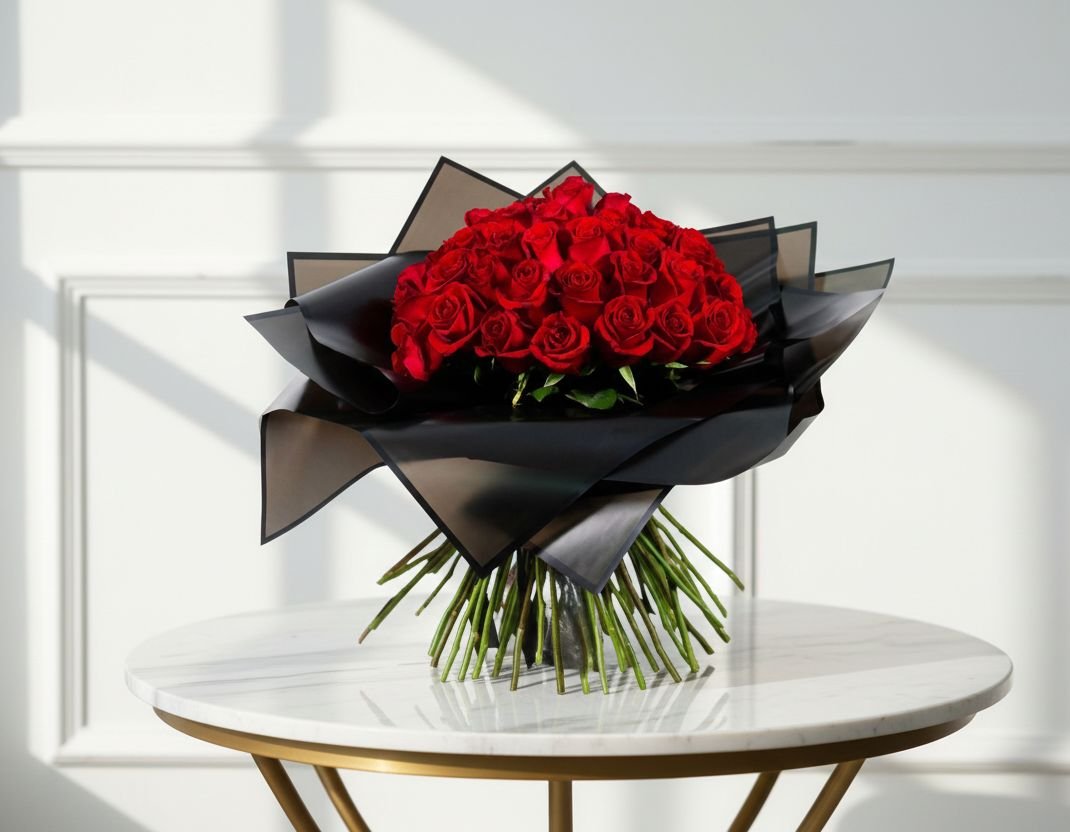 | Elegant bouquet with 15 roses, carefully wrapped and adorned with a beautiful ribbon |